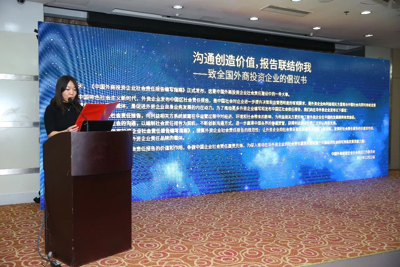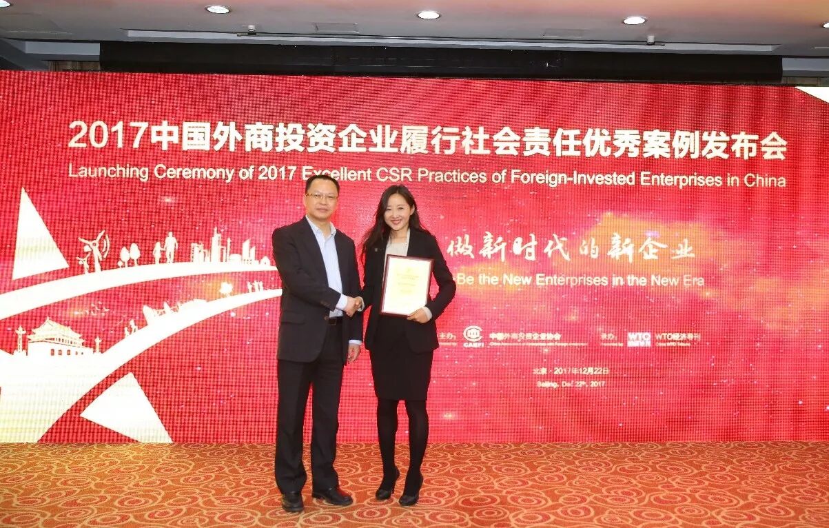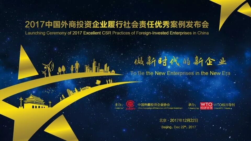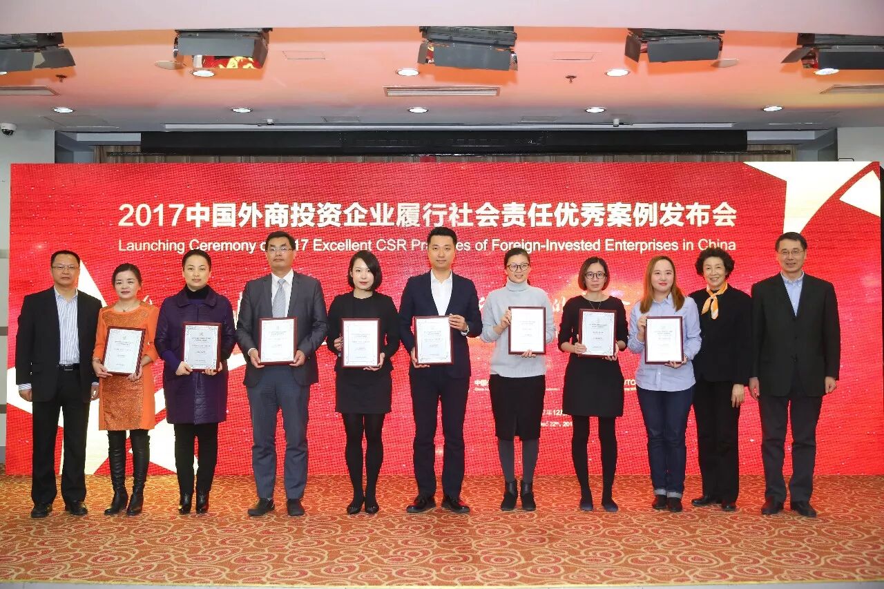 2017年12月22日,由中国外商投资企业协会主办的“2017中国外商投资企业履行社会责任优秀案例”暨“中国外商投资企业社会责任报告编写指南”发布会在北京举行。