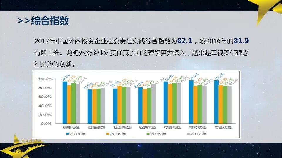 此次会议发布了“2017中国外商投资企业履行社会责任优秀案例”,并为获奖企业授牌,还同步发布2017中国外商投资企业履行社会责任优秀实践指数报告、《中国外商投资企业社会责任报告编写指南》。