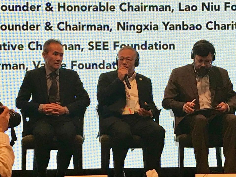 “气候变化全球行动”倡议启动后,阿拉善SEE基金会执行理事长艾路明等东西方慈善家就“应对全球气候变化挑战行动方案”话题进行圆桌对话。
