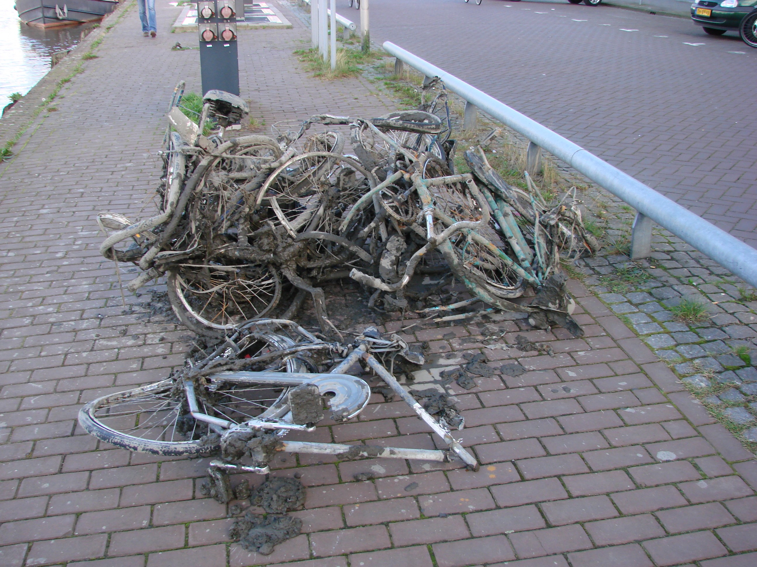 对自行车的停放也要有一定引导,可以放置一些自行车支架,把自行车插在里面。这样,人就会自觉把车停在上面,这种支架不仅能让自行车停放更有秩序,也能更好地保护自行车:一方面防止自行车翻倒,一方面可以把自行车锁到支架上,减少丢失的可能性。除了最常见的支架,也有不同类型的停放辅助设施,如河边的停车杆等。火车站附近,通常有大量的自行车停放需求,管理者为防止乱停车,还会画一些白框,如果支架不够,把车挤在白框里也行,但不能超出白框,否则会被拖走。笔者的自行车有一次就因停放不当而被拖走,起初以为丢了,而荷兰朋友说,可以去一个网站上查,说不定是被拖走的。后来,我果然在网站上看到了自己的自行车,为此,不得不跑到一个很远的地方取车交罚金,从此以后,我再也不敢乱停自行车了。