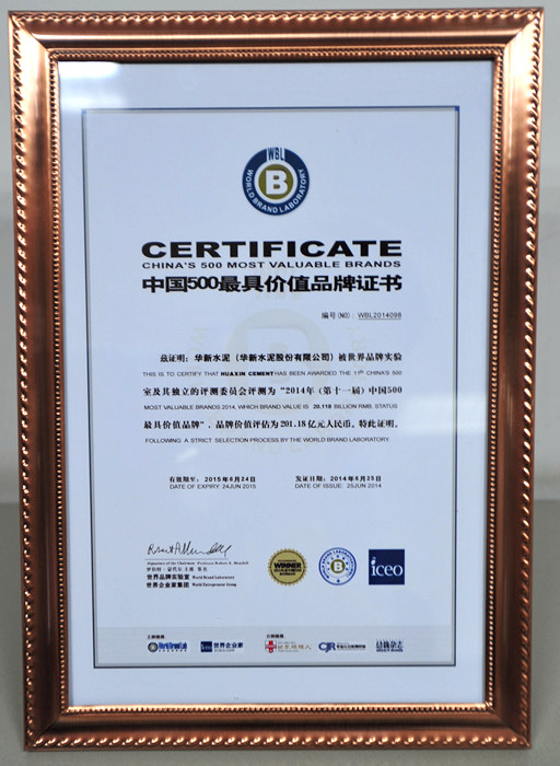 6月25日,世界品牌实验室在北京隆重发布了2014年(第十一届)《中国500最具价值品牌排行榜》,华新水泥以201.18亿元人民币的品牌价值荣登“中国500最具价值品牌”榜单前100强,位居98位,同比2013年的首次评估和排名结果,品牌价值增长了48.22亿元,综合排名提升了20位。