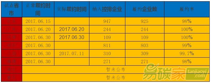 表1 各试点履约最新概况