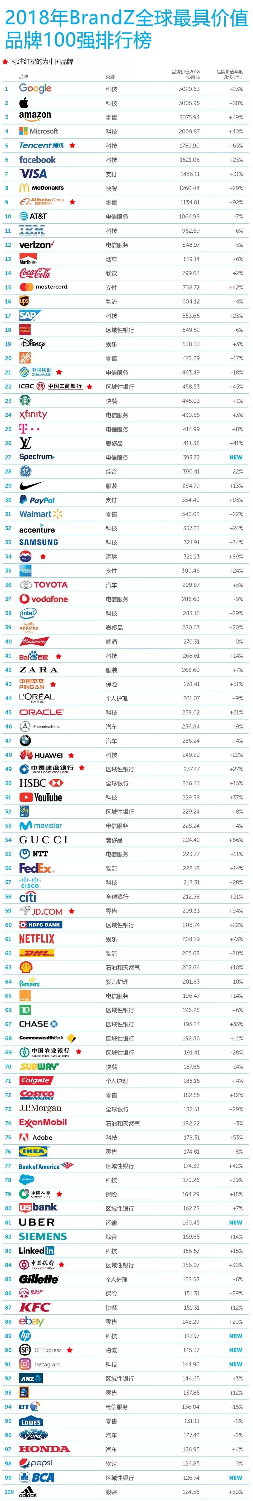 2018年 BrandZ 全球品牌价值10强