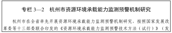丽水市在“红线管治”的约束下,实现了生态、产业、城乡统筹的共赢,积极创建浙江(丽水)绿色发展综合改革创新区,打造践行“绿水青山就是金山银山”全国标杆和“诗画浙江”鲜活样板。杭州建立流域生态补偿公共财政制度,积极探索新安江流域黄山和杭州间生态补偿和生态共保机制。湖州制定《湖州市主要污染物排污权有偿使用和交易管理办法》,推进化学需氧量、氮氧化物等主要污染物排污权有偿使用和交易,制定《关于湖州市全面推行区域能评改革的实施意见》、《湖州市“区域环评+环境标准”改革实施方案》,完善环境治理体系。