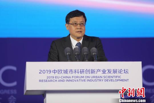 中新网天津5月17日电 (记者 张道正)2019中欧城市科研创新产业发展论坛17日在天津举行。论坛邀请中国与欧洲的城市代表、专家学者、科技企业代表500余人,围绕“智能经济引领城市发展”这一主题,开展了科研创新引领、智能产业发展等方面的交流讨论。