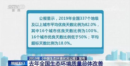 生态环境部2日发布2019年《中国生态环境状况公报》。2019年,全国生态环境质量总体改善,环境空气质量改善成果进一步巩固,水环境质量持续改善。