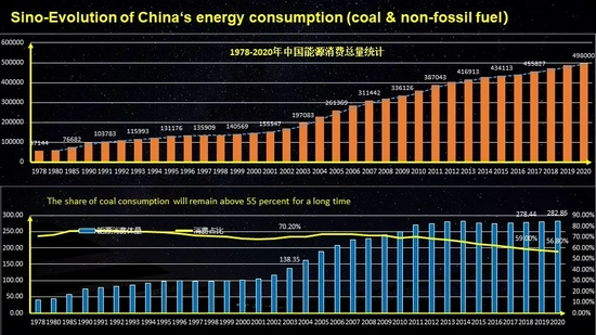 上个世纪以来,中国的能源消耗是社会发展和经济发展的重要支柱。与此同时,煤炭在中国的能源消耗结构中长期占比50%以上,而可再生能源占比很低。