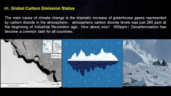 当前全球气候变化最主要原因是大气中温室气体的大幅增加。工业化时代以来,大气中的二氧化碳含量已经由280ppm增长到400ppm,减碳已成为全球所有国家共同的任务。